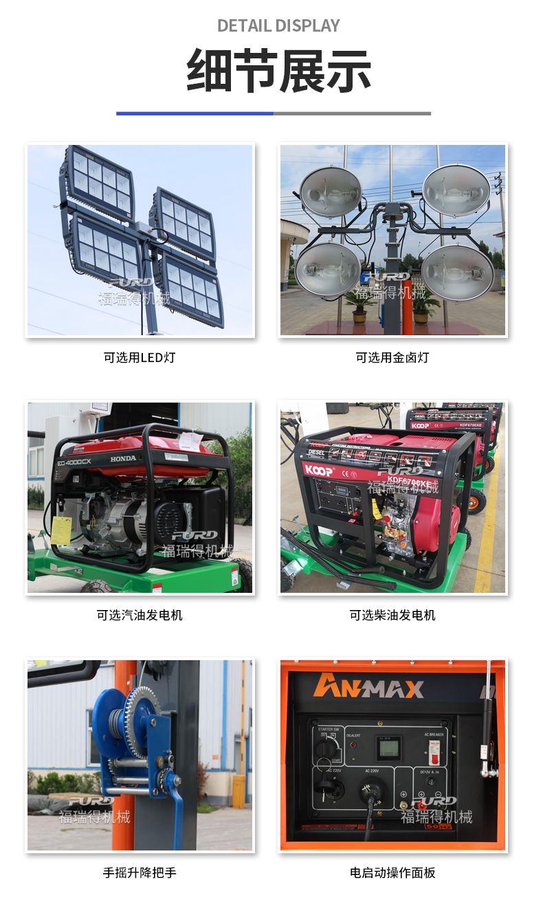 用于體育場館、機(jī)場、碼頭等大型公共場所,公路、鐵路、電力等緊急搶險(xiǎn)現(xiàn)場,露天采礦現(xiàn)場,以及防洪防汛、搶險(xiǎn)救災(zāi)現(xiàn)場等其他需要緊急備用光源、電源的場合。