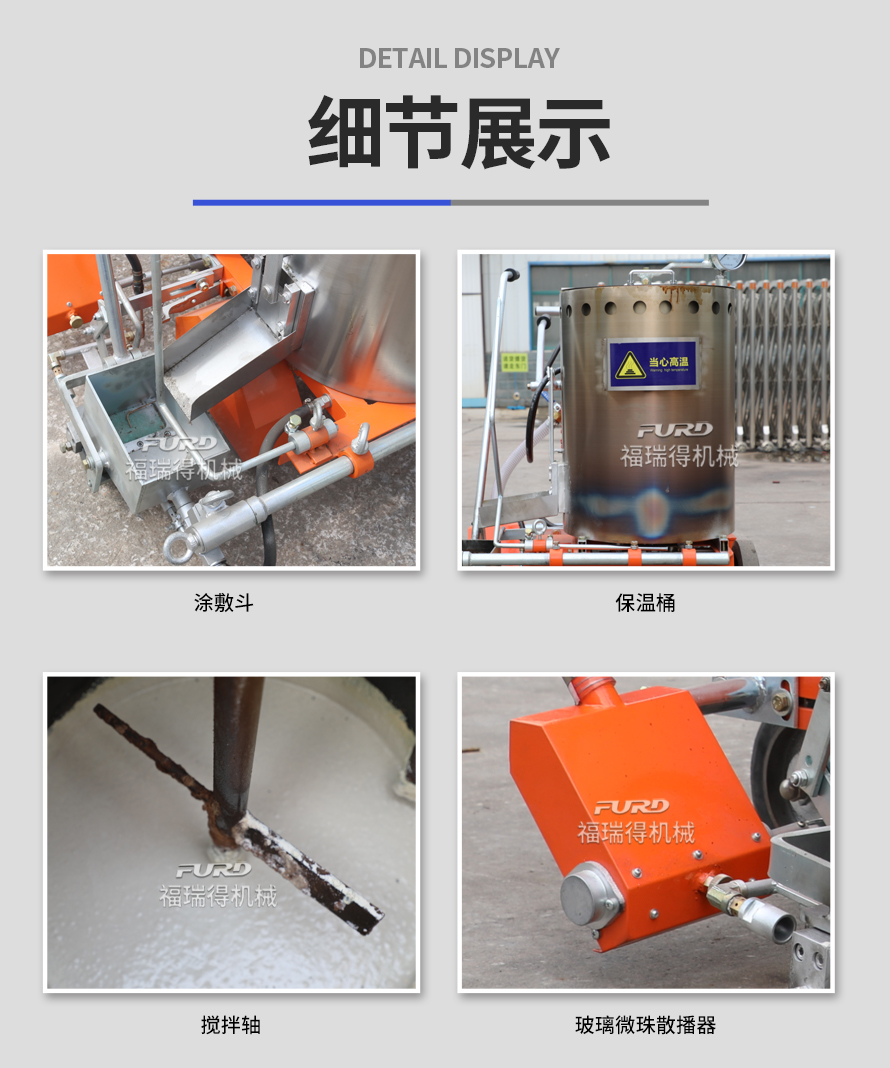 應(yīng)用于道路、高速公路、停車(chē)場(chǎng)、廣場(chǎng)和跑道的在平整地面上劃出不同約速、指引和警示等規(guī)則限制標(biāo)志的路面施工機(jī)械。