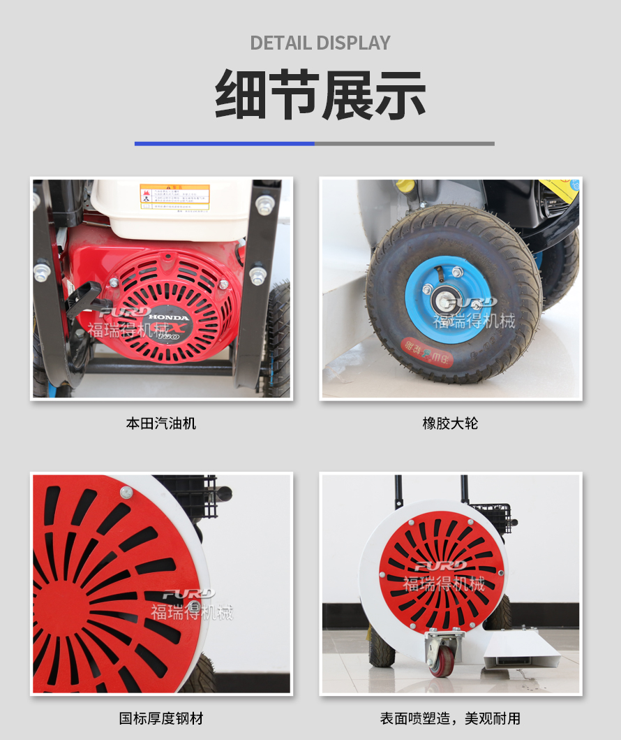 用于水泥、瀝青路面的清掃、清潔。 1.本田汽油動力,性能穩(wěn)定; 2.動力平衡極好的風葉,保證整體的穩(wěn)定性; 3.超大風量,性能優(yōu)越。