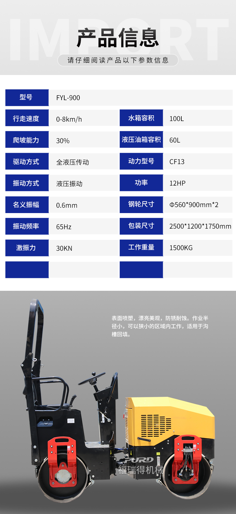 FYL-900CC  1.5噸全液壓振動壓路機
