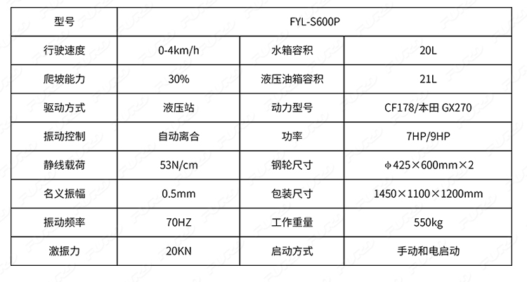 FYL-S600P 新款手扶雙鋼輪壓路機