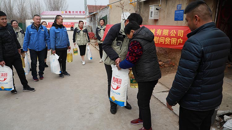 公司準(zhǔn)備了大米、食用油等生活物品,在劉總帶領(lǐng)下我們來到了南集六村黨群服務(wù)處,和村領(lǐng)導(dǎo)溝通了解了村內(nèi)貧困戶情況,并一起走訪慰問貧困戶。