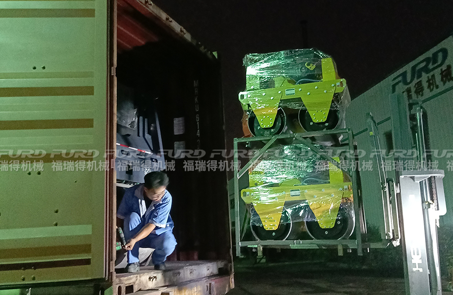福瑞得一批路面壓路機(jī)裝柜出口馬來(lái)西亞