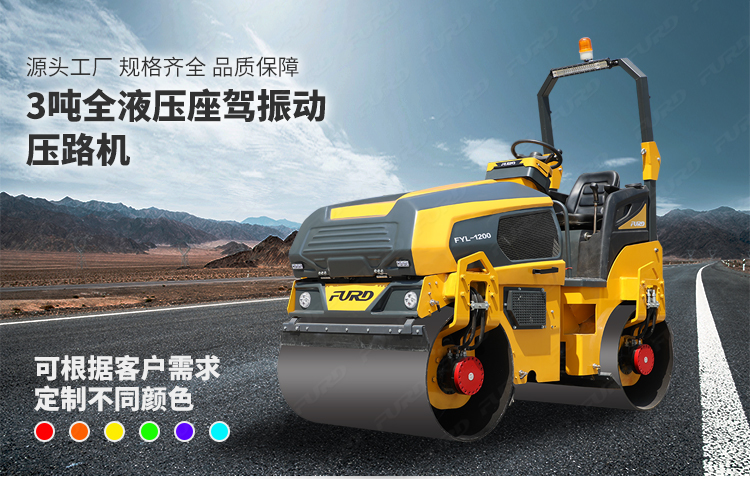 FYL-1200是3噸振動壓路機,采用全液壓傳動,雙鼓液壓驅(qū)動,液壓轉(zhuǎn)向和液壓振動。雙鼓振動壓路機