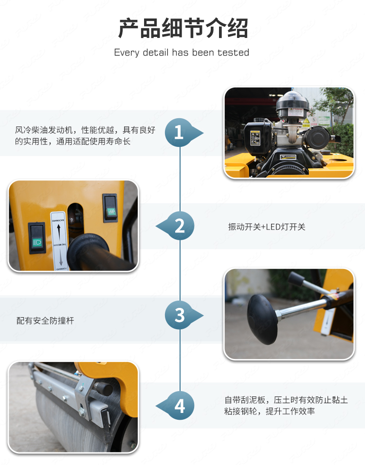 小型振動壓路機(jī),適用于各種道路、高速公路肩路、路邊人行道、停車場、運(yùn)動場、花園草坪的修補(bǔ)和養(yǎng)護(hù)。特別適用于管道、排水溝等狹窄區(qū)域的壓實(shí)。